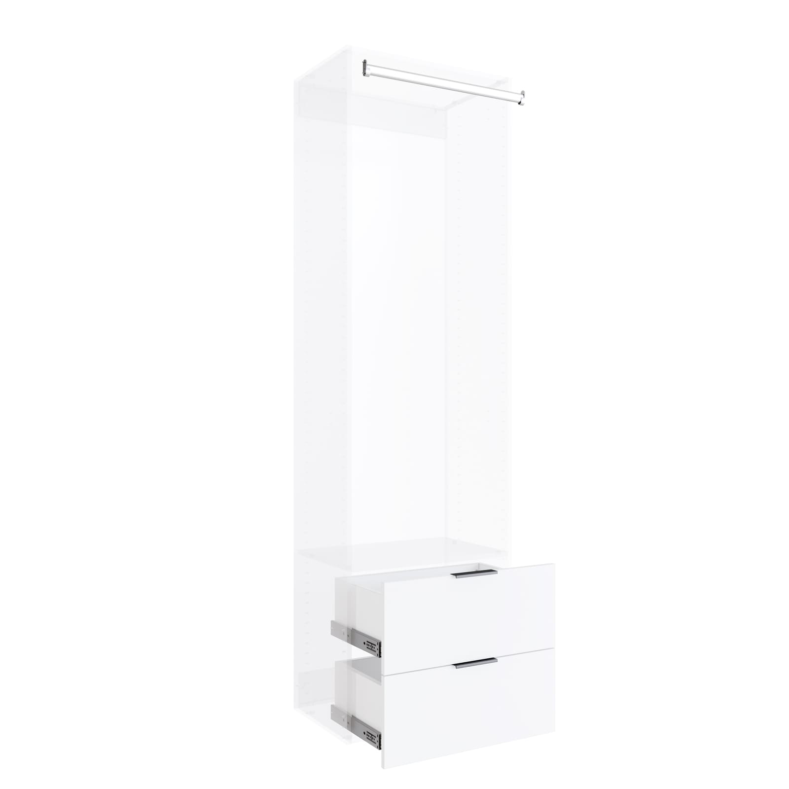 Lugna 2 Drawer, 1 Hangrail Insert Kit White – Fits 600X380MM Cabinet Shell