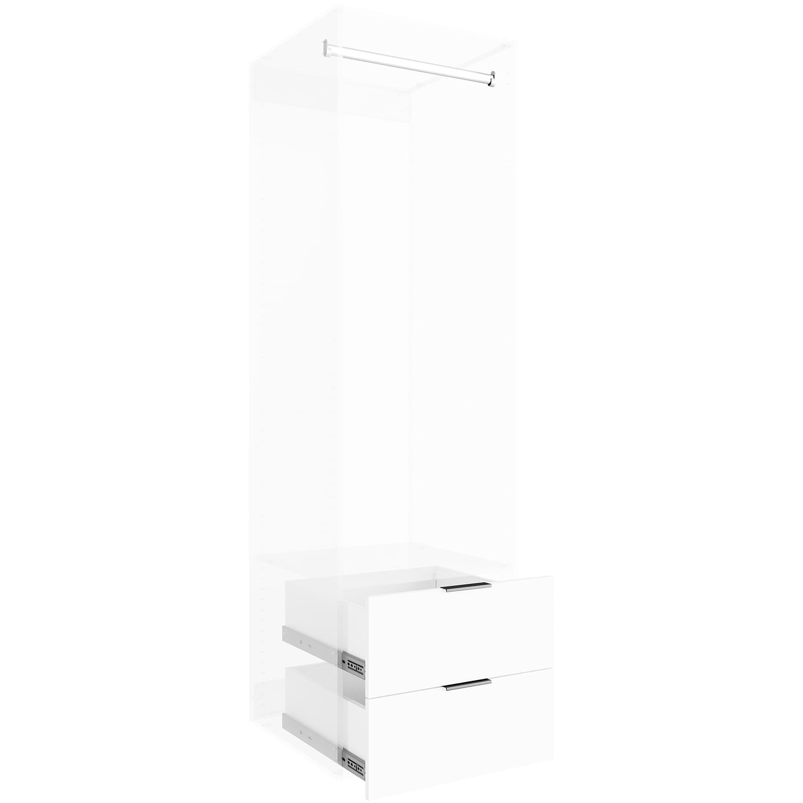 Lugna 2 Drawer, 1 Hangrail Insert Kit White – Fits 600X580MM Cabinet Shell