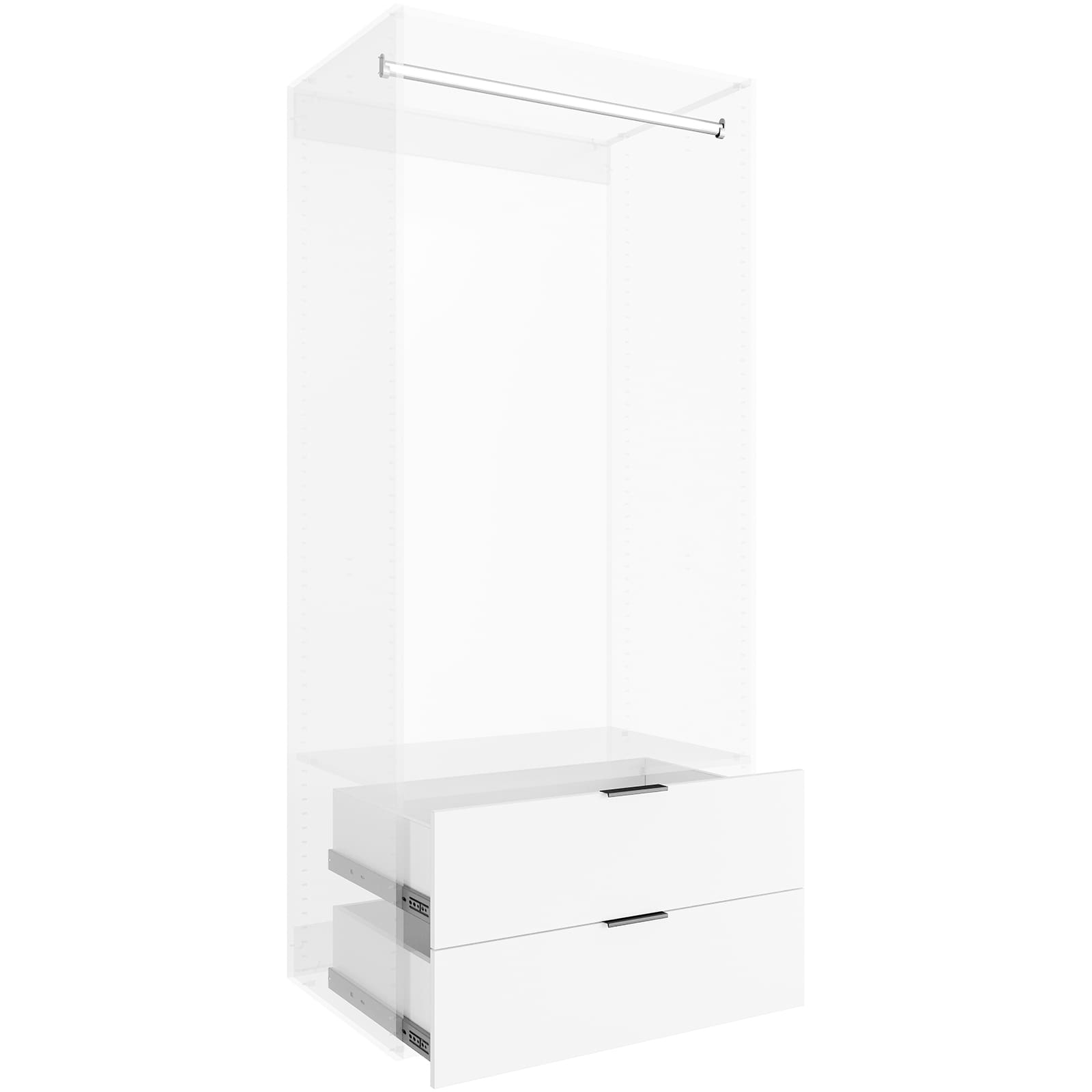 Lugna 2 Drawer, 1 Hangrail Insert Kit White – Fits 900X580MM Cabinet Shell